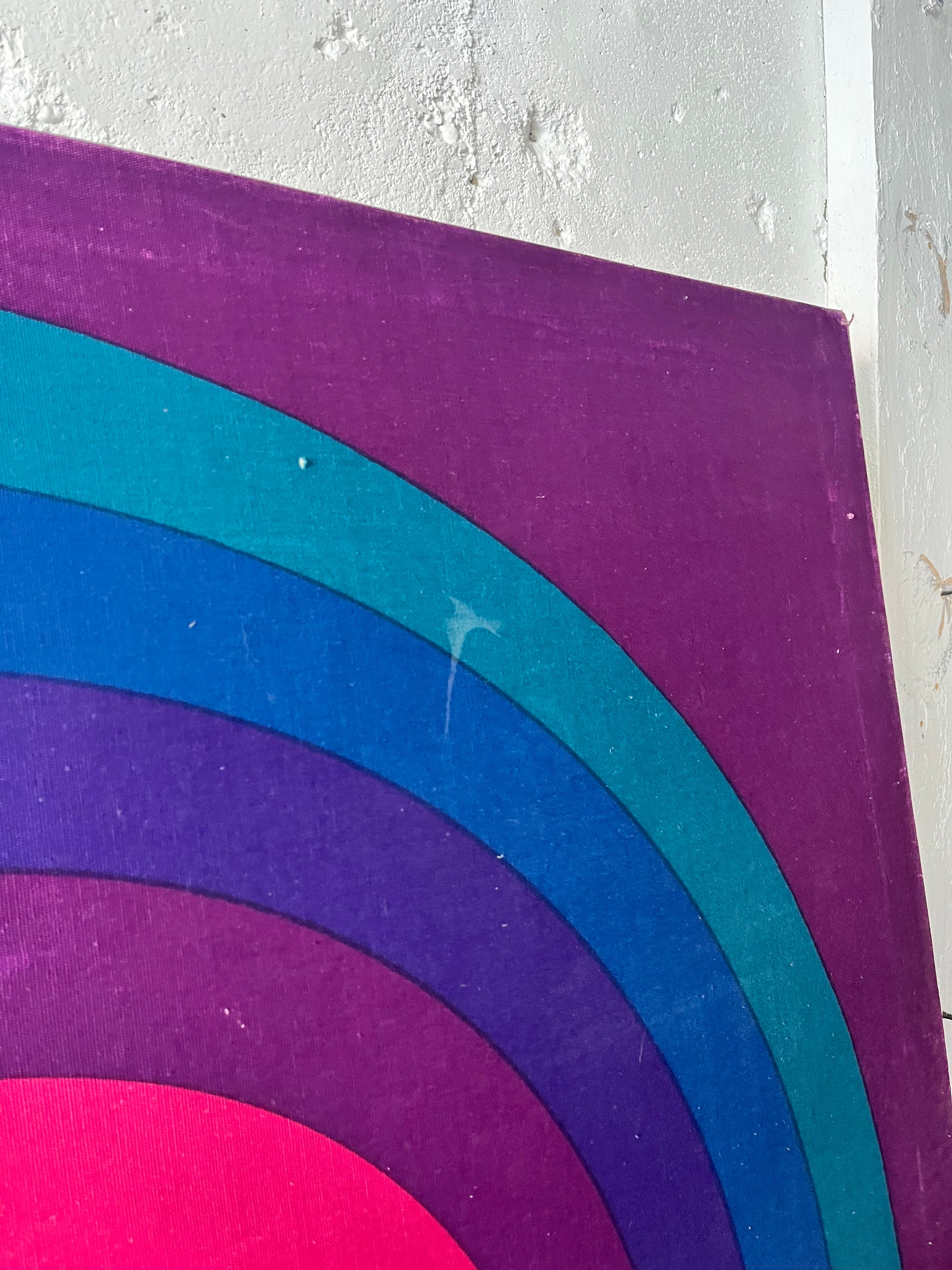 Shows some wear with stains and fading throughout pictured, some fraying on the side and corner pictured